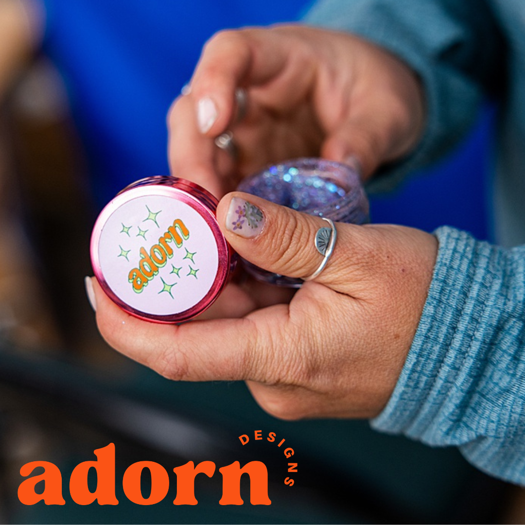 "Adorn is all about spreading joy and creating community, and that's why we are so stoked to be supporting Rally the Village. We believe that glitter plays a central role in building your village and showing up authentically."